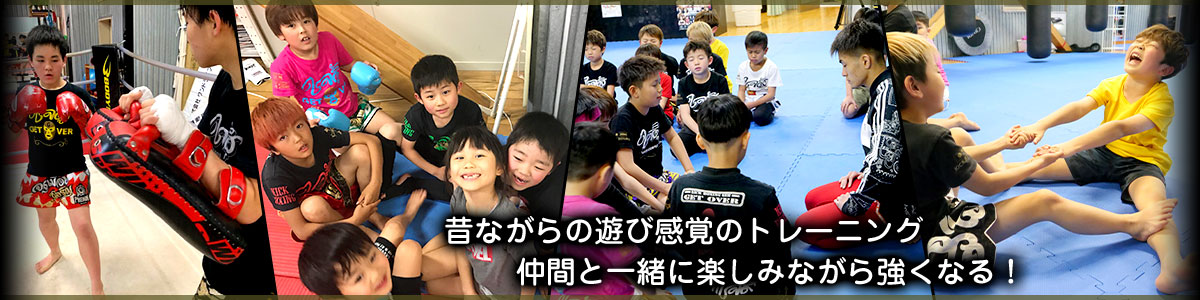 GETOVERジュニアクラスでは、小学校の低学年から仲間と一緒に身体を動かす喜びを知ってもらうため、昔ながらの遊び感覚のトレーニングを行っています。 鬼ごっこ、相撲、プロレスなど、昔、無我夢中で仲間と毎日やっていた遊びの中には、自然と基礎体力トレーニングになっている動きがあります。 そんな遊びで楽しく身体を動かした後に、基本的なキックボクシングのトレーニングを行います。