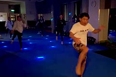 暗闇で音と光の空間の中で音楽にのってキックボクシングの動きで汗をかくキックボクササイズ。 テンションがアゲアゲの空間の中で、みんなでパンチキックで汗をかいてダイエット・ストレス発散。特に初心者にはお勧めです。