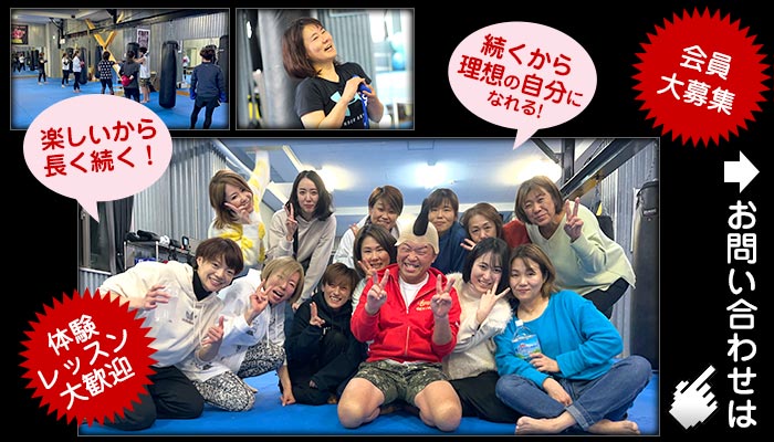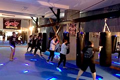 エアロタイ(キックボクシングとエアロビクスを融合)に加え、ミット打ち、サンドバッグ打ちで、気持ち良い汗を流すことができます。