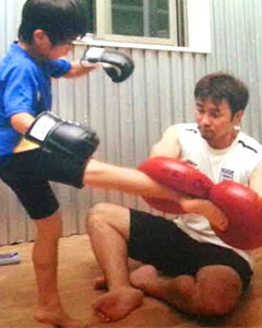 極めつけは会長自ら小1の息子とマススパーをやってました。