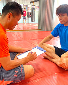 今と全く変わらず、会員さん達のミットを持って一生懸命指導しています。本当にキックボクシングが好きなんだなぁ~って伝わってきます。
